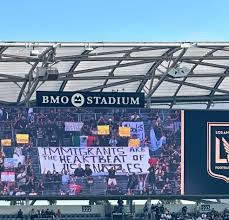 Tifosi del Los Angeles FC con cartelli e scritte contro l'ICE